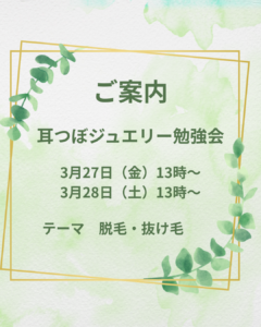- 耳つぼジュエリー勉強会 テーマは抜け毛耳つぼジュエリースクールあすなろ 勉強会のご案内です。 … 続きを読む: 耳つぼジュエリー勉強会 テーマは抜け毛